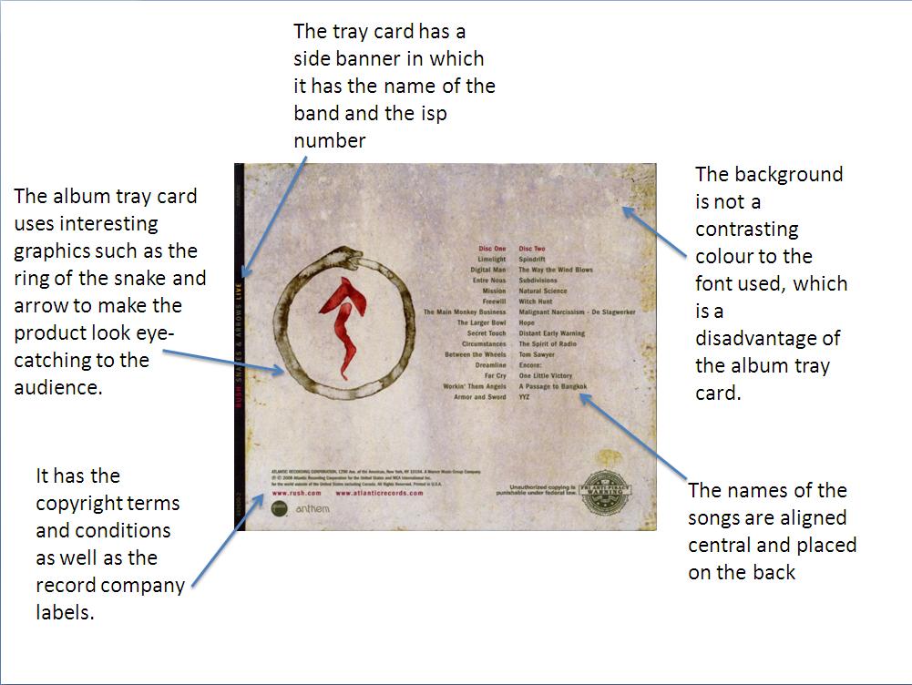 As previously stated we chose our font for the band name and the album name to be the same. However in order to differentiate them from each other, we decided to add effects, shapes and change the sizing for it to stand out to become their trade mark style for the band name.